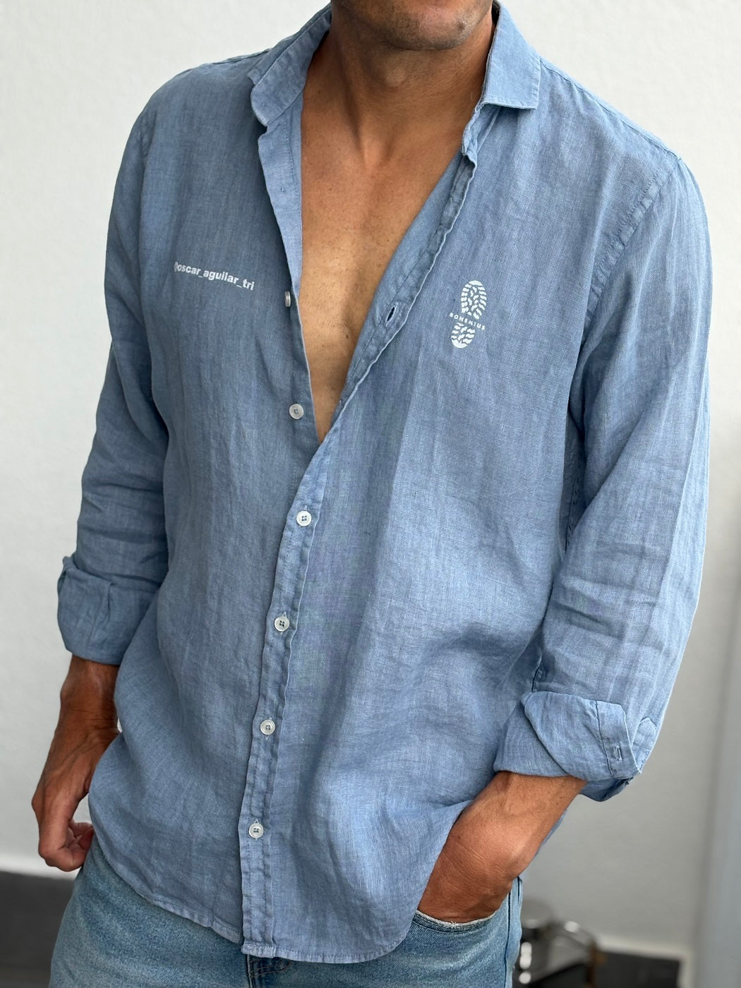 Camisa regular fit confeccionada en tejido de lino. Cuello solapa y manga larga acabada en puño con botón. Transpirable y ligera para lucirla de forma natural y relajada, tiene un poco de arrugas (es parte del estilo).